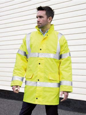 100% poliéster exterior hidrófugo con forro polar y acolchado 100% poliéster. Dos tiras reflectantes (5cm de ancho) en forma de V en el cuerpo y en los brazos para una mejor visibilidad. Cuello alto con protector de mentón integrado. Bolsillo en el pecho con cremallera. 2 bolsillos laterales con cremallera para abrigar las manos. 1 bolsillo parche en el forro fijo de polar. Ribetes reflectantes en el bajo de las mangas y de la prenda. Cremallera para la personalización invisible en el bajo de la prenda (lado interior). Cumple con la norma EN ISO 20471:2013 de categoría 3 (solo los colores Hi-Vis Yellow y Hi-Vis Orange) y con la norma sobre «Prendas de Alta Visibilidad» de las vías férreas UK GO/RT 3279 emitida 8:2013 (solo Hi-Vis Orange).