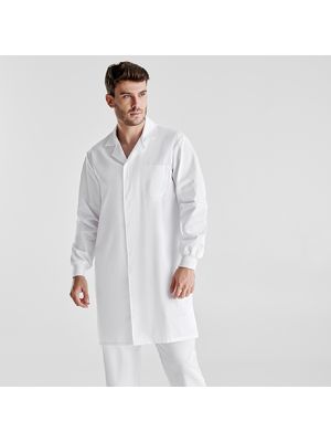 Bata VACCINEBata de servicios Unisex de manga larga: 1. Cuello con solapa. 2. Apertura central con 5 botones a tono. 3. Un bolsillo en pecho y dos laterales. 4. Cinturilla trasera.Desde 12,18 € /ud