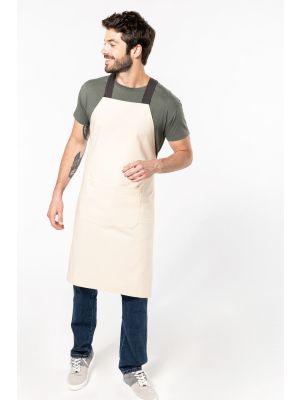 100% algodón. Tira ajustable en cuello con hebilla metálica. Bolsillo grande con 2 compartimientos. Certificado STANDARD 100 by OEKO-TEX®N° CQ1007/8, IFTH.