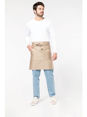 65% poliéster / 35% algodón. Bolsillo delantero grande con bolsillo para bolígrafo integrado. Dimensiones delantal: 80 cm x 90 cm (largo/ancho). Bolsillo: 20 cm x 25 cm (largo/ancho).