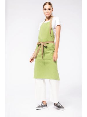 100% algodón orgánico. Lavado doméstico a 60°C. Tira en cuello con hebilla de plástico reciclado para ajustar el largo del delantal. Bolsillo delantero grande con dos compartimentos. Dimensiones (alto x ancho): 90 cm x 76 cm. Bolsillo (alto x ancho): 20 cm x 31,5 cm.