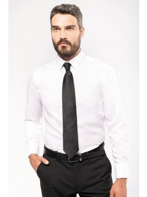 100% popelina de algodón. Tejido de fácil cuidado (tratamiento Easy Care). Cuello cut-away. Botones a tono. Bolsillo en pecho izquierdo. Canesú doble con 2 pliegues detrás. Acabados con costuras vueltas y doble pespuste en puños. 1 botón adicional. Dobladillo con forma redonda. Certificado STANDARD 100 by OEKO-TEX®N° CQ1007/7, IFTH.