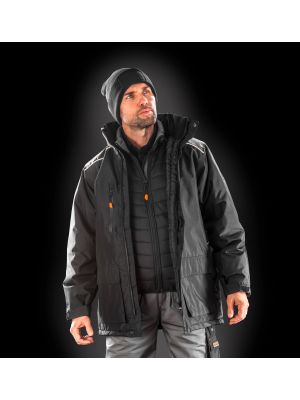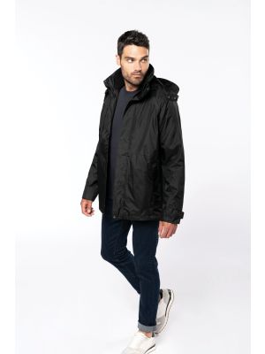 Exterior: 100% poliéster con revestimiento PVC. Costuras selladas resistentes al agua. Parka 3-en-1: acolchado en 2 materiales. Cuerpo: rejilla100% poliéster. Mangas: 100% poliéster. Cierre con cremallera y solapa con corchetes. Forro interior cuello de polar. 3 bolsillos delanteros con cremallera y solapa. Tira ajustable en puños. Capucha extraíble mediante corchetes a presión. Capucha forrada con rejilla y cierre con bloqueadores. Cremallera interior para facilitar la personalización. Chaqueta polar: micropolar 100% poliéster. Forro brazos en poliéster para facilitar el paso de los brazos. Cierre con cremallera. 2 bolsillos laterales. Chaqueta micropolar desmontable con cremallera. Peso medio en la talla L: 1550 g.