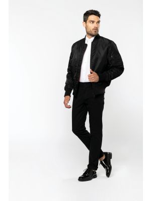 100 % poliamida. Acolchado interior 100% poliéster. Forro acolchado de 100% tafetán de poliéster en contraste. Cierre con cremallera con cursor reversible. Dos bolsillos en la parte delantera con ribetes, solapa y botón de presión. Bolsillo exterior con cremallera y ranura para colocar un bolígrafo en la manga izquierda. Canalé 2x2 en el cuello, puños y bajo de la prenda. Lado reversible (interior - color Orange): dos bolsillos laterales con ribete y botón de presión. Cremallera en el bajo de la prenda para la personalización. Sin etiqueta de marca en el cuello, únicamente una etiqueta con la talla autoadhesiva y removible. Peso medio en la talla L: 917 g.
