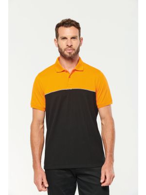 60% algodón peinado/ 40% poliéster reciclado. Hilo Vortex. Punto piqué. Tratamiento antibolitas. Lavable a 60°C. Corte entallado. Plaqueta con 2 botones a tono. Cuello de canalé 1x1 con tira cubrecosturas diseño espiga contrastada. Ribete a contraste entre las partes bicolor de la prenda (cuerpo y mangas, delantero y espalda). Acabados de canalé en el bajo de las mangas. Aberturas laterales con tira en diseño espiga a contraste. Acabado de doble pespunte en el bajo de la prenda. Etiqueta de marca extraíble Tear-away.