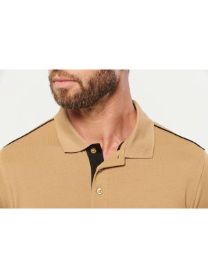 65% poliéster / 35% algodón. Algodon peinado, punto piqué. Lavable a 60°C. Tratamiento antibolitas. Tapeta de 3 botones con tira interior contrastada. Cuello de canalé con tira tapacosturas. Vivo contrastado en hombros e interior cuello. Acabados de canalé en el bajo de las mangas con ribete contrastado. Aberturas laterales con tira de espiga contrastada para mayor comodidad. Acabado de doble pespunte en el bajo de la prenda. Ideal para el uso diario. Certificado STANDARD 100 by OEKO-TEX®N° CQ1007/7, IFTH.