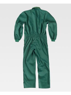 Buzo con cuello camisero y solapa postiza de velcro para alimentación. Un bolso de pecho de plastón con cierre de velcro en el interior. Abertura de acceso al interior con cierre de corchete en los costados. Puño elástico. Elástico en la espalda.