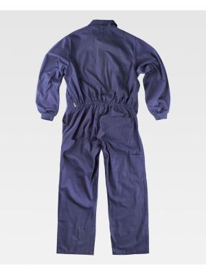 Buzo combinado con refuerzos y triple costura en tejido Beaver Nylon de alta resistencia, antimanchas y repelente a lÃquidos. Cuello camisero y canesús con vivos a contraste que continúan en el delantero de la manga. Cremalleras de nylon de doble tirador ocultas por solapa postiza con velcro en el cierre frontal. Dos bolsos de pecho de plastón con cartera de velcro, dos bolsos de abertura inclinada en los costados. Un bolso lateral de carga con bolsillo auxiliar superpuesto, ambos con cartera de velcro. Argolla en bolso de pecho y bolso de carga. Dos bolsos traseros con pliegue inferior y cierre de velcro, y un bolso de espátula doble. Un bolsillo en la manga con cartera y velcro. Puño con corchetes. Cortes decorativos en espalda. Presillas a contraste y tiradores. Refuerzo con cierre de velcro para rodilleras de protección. Ajuste de velcro en los laterales de la cintura.