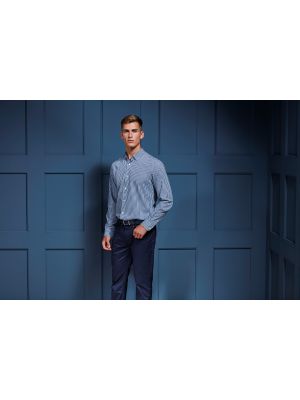 Camisa de manga larga, corte entallado con pinzas en delantero y espalda, bolsillo frontal izquierdo y tapeta cubre botones. Puño con 2 botones. Bajo con forma. Cuidado fácil.