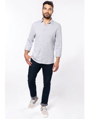 Camisa Jacquard<br/>Manga larga Manga larga68 % algodón / 32 % poliéster. Punto Jacquard. Tira de gamuza a contraste en la base del cuello. Estilo moderno. Material cómodo y suave. Plaqueta clásica con botones de imitación nácar. Puños ajustables con botones de imitación nácar. Dobladillo con forma redondeada.Desde 18,06 € /ud