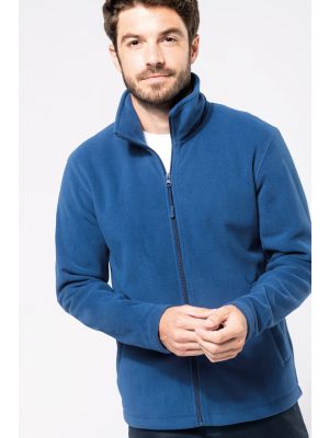 Chaqueta de punto con forro de polar Manga largaExterior: 50% algodón/ 50% acrílico. Interior: 100% poliéster micropolar. Forro de mangas y acolchado de poliéster. Cálido y confortable. Dos bolsillos con cremallera y cremallera entera en delantero. Canalé 2x2 en hombros, laterales y mangas. Forro de canalé 2x2 en el cuello, puños y bajo de la prenda. Cremallera lateral interior invisible para el fácil acceso de la personalización tanto lateral como trasera. Peso medio en la talla L: 1150 g.Desde 39,85 € /ud